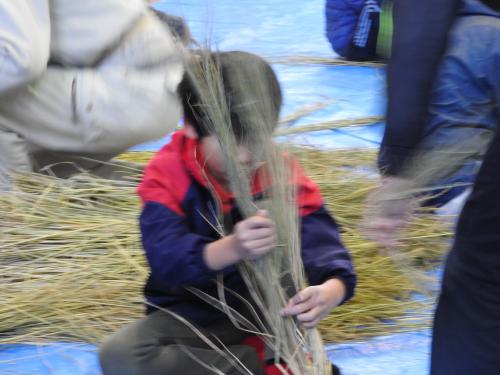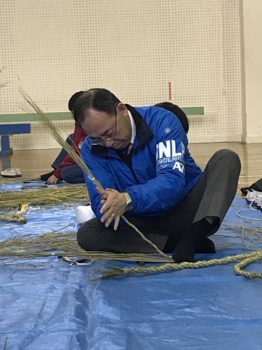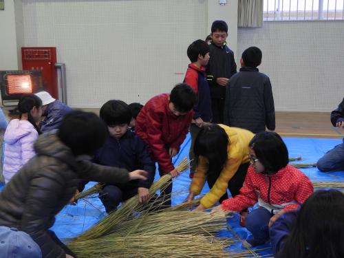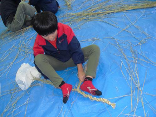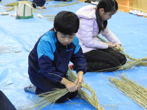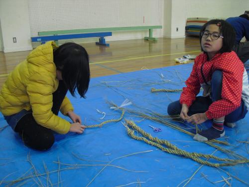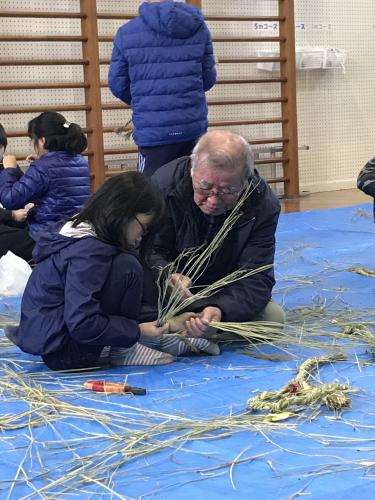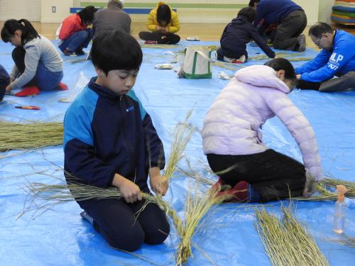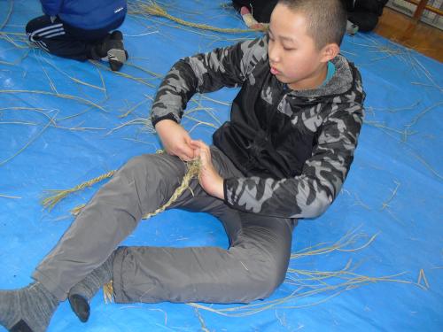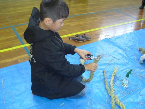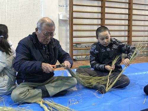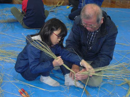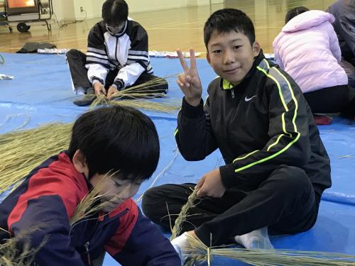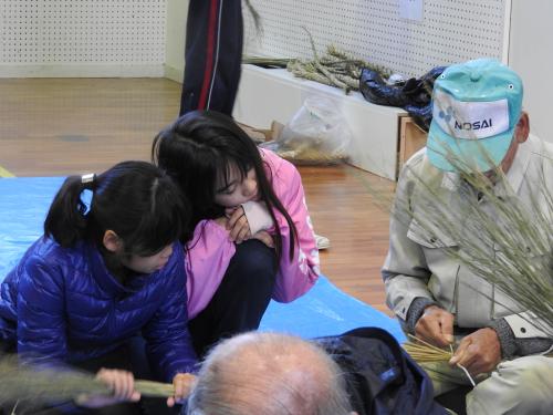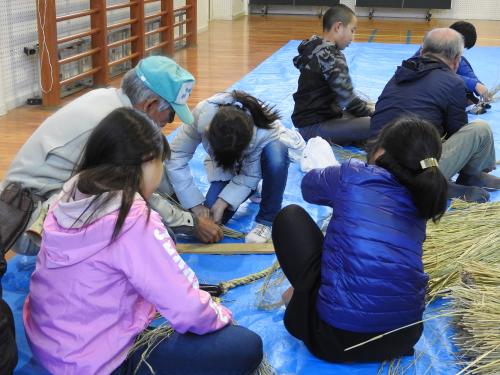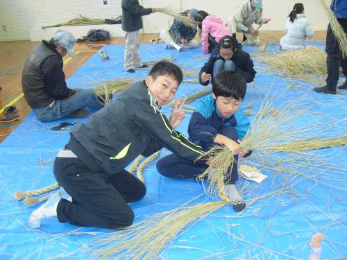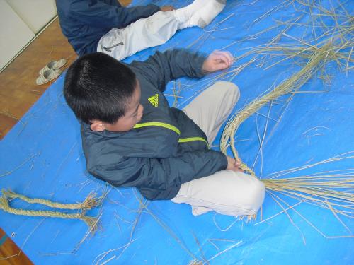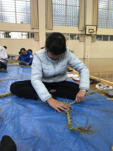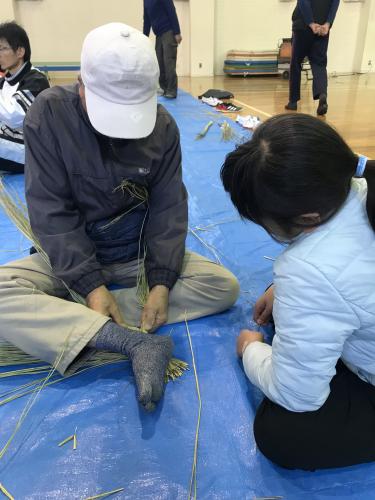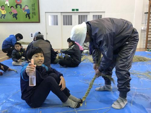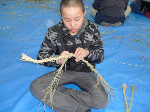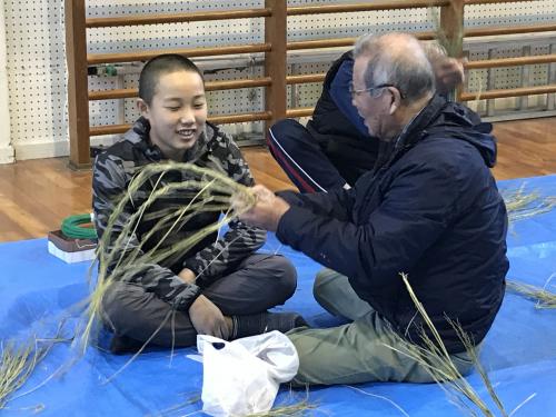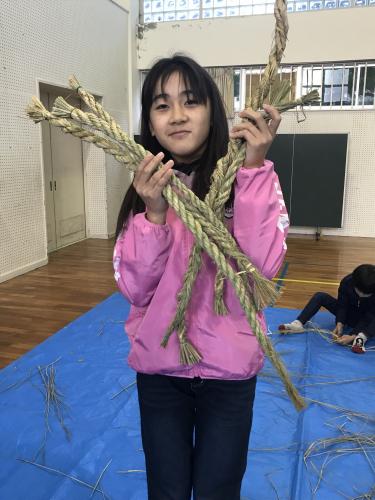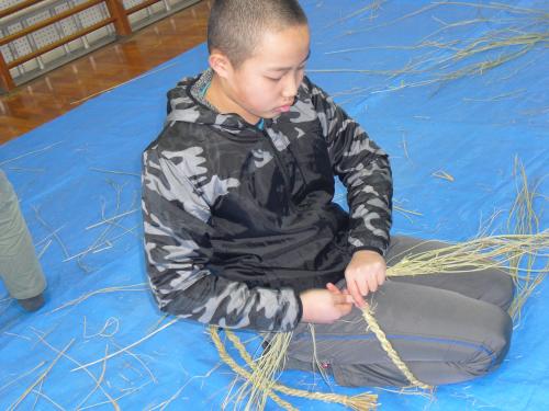 長生会のおじいちゃん達に作り方を教えて頂いて、立派なお正月のしめ縄が完成しました\(^o^)/