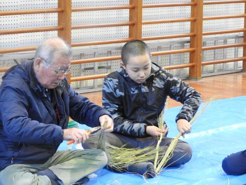 長生会のおじいちゃん達に作り方を教えて頂いて、立派なお正月のしめ縄が完成しました\(^o^)/