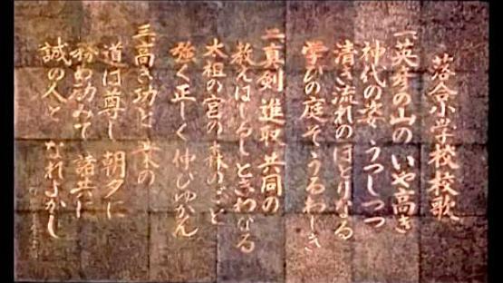 一、 英彦の山のいや高き 神代の姿うつしつつ 清き流れのほとりなる 学びの庭ぞうるわしき 二、 真剣進取共同の 教えはしるしときわなる 太祖の宮の森のごと 強く正しく伸びゆかん 三、 高き功と業の 道は尊し朝夕に 務め励みて諸共に 誠の人となれよかし